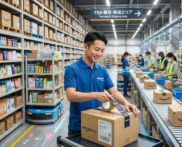仕入れた商品をAmazonのシステム(セラーセントラル)に1つずつ登録し、販売の準備を整えます。FBAを利用する場合は、専用のラベルを商品に貼り付けてAmazonの専用倉庫へ発送します。